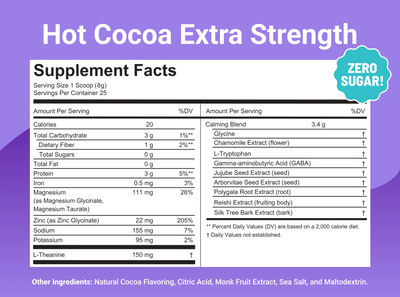 While our regular strength blend has all the core superfood ingredients you need to get a quality night sleep; our Extra Strength blend has a few bonus ingredients to pack an extra punch.