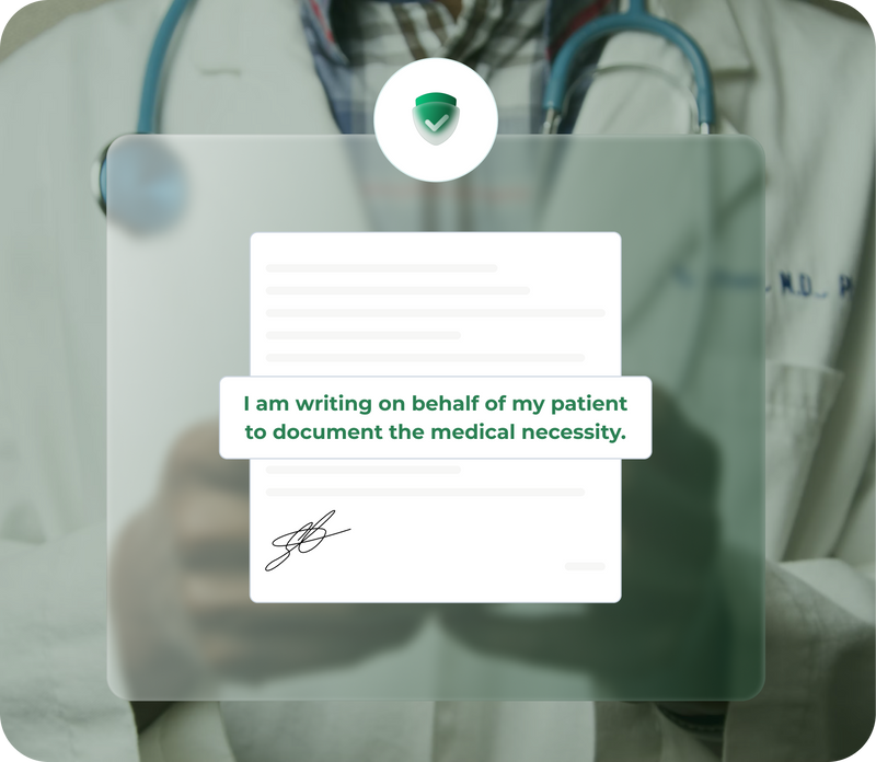Take a quick, private health survey. A licensed provider will review your answers to determine eligibility. If eligible, you'll receive a Letter of Medical Necessity (LMN) within 1-2 days. Note: The survey must be taken on the same day as your purchase.
