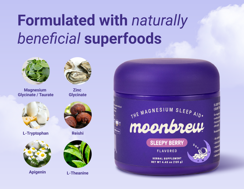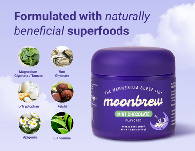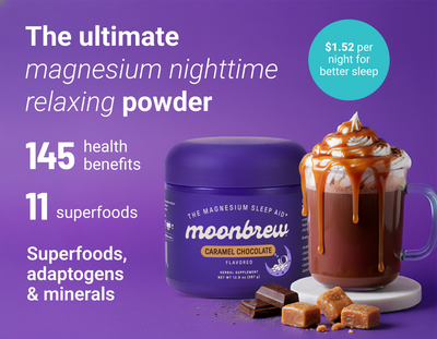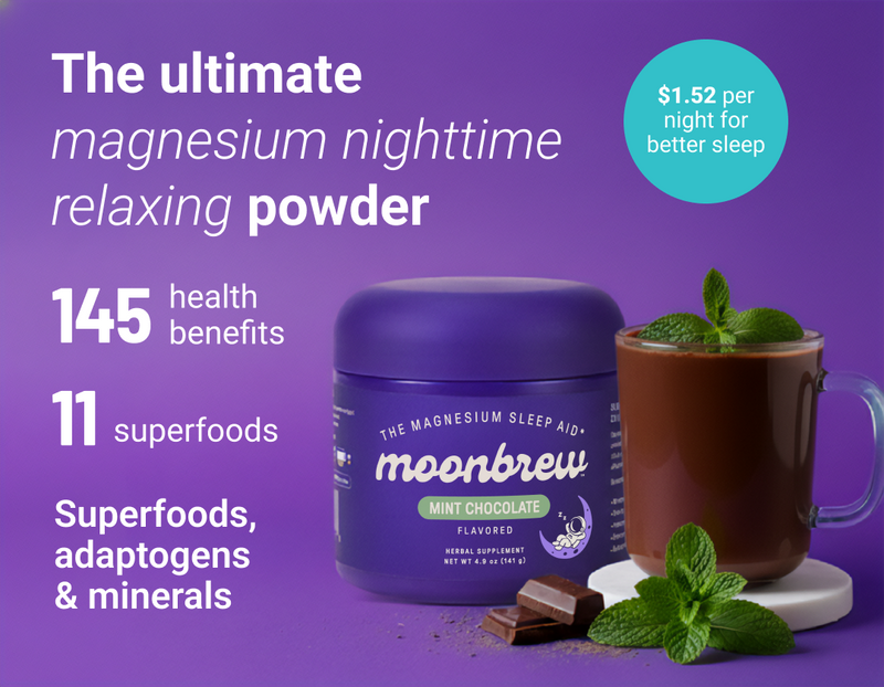 MoonBrew uses the top superfoods and magnesium blends to help you get the best sleep of your life.