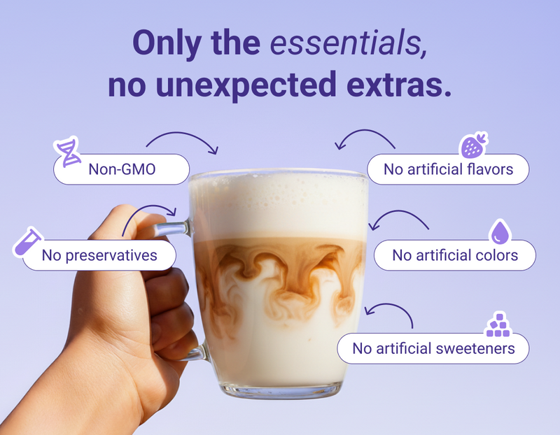Sleepy Coffee (Vanilla Latte) is lightly sweetened with cane sugar.