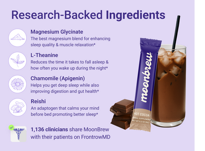 We take your safety seriously, and are proud that MoonBrew is recommended by 1000+ clinicians on Frontrow MD. Our blend is carefully developed to meet the highest standards of safety and efficacy. It’s a supplement that health professionals confidently recommend for better sleep and wellness.